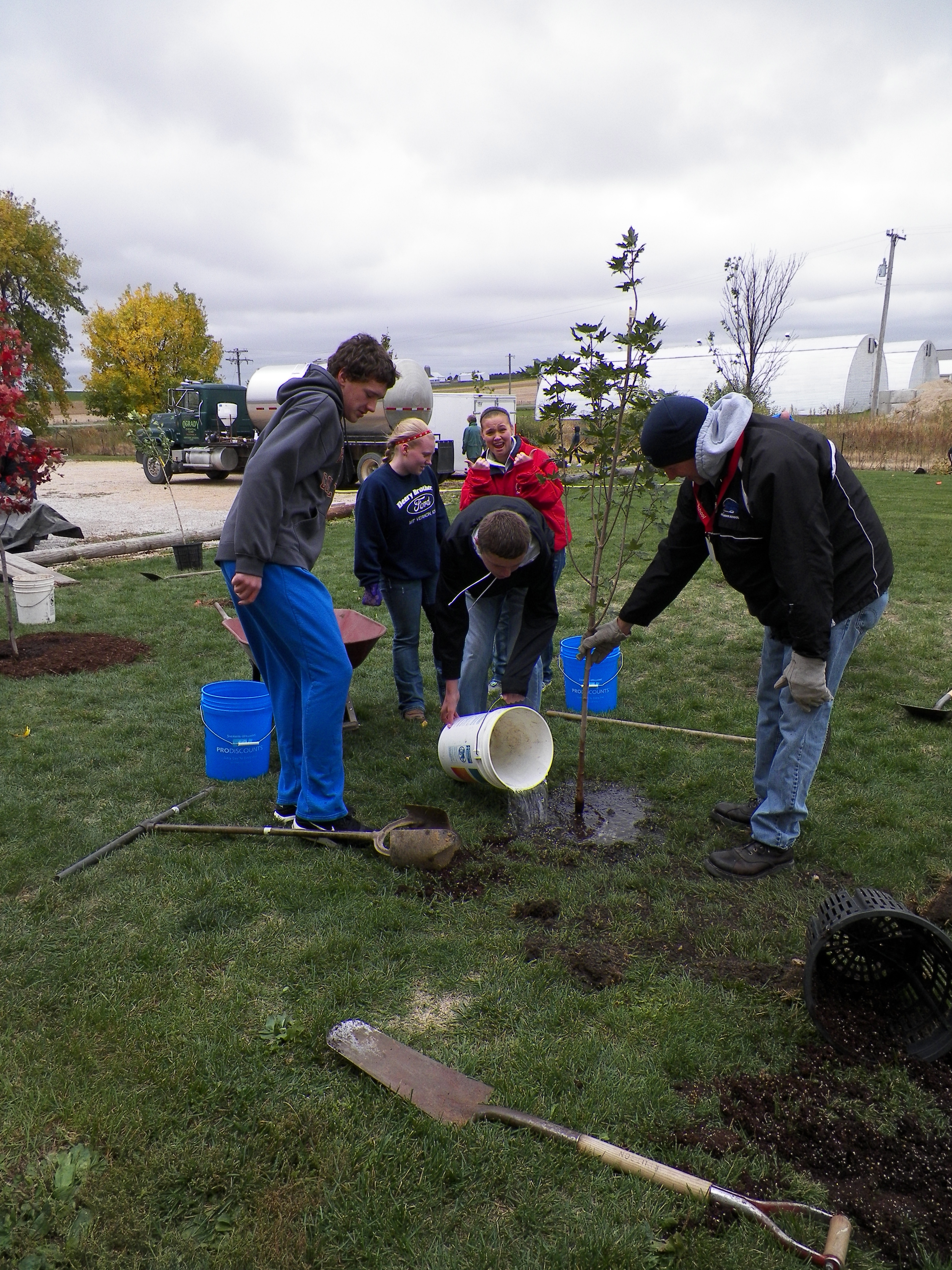 Last year’s eighth grade students returned to help complete the tree planting project they began at the end of 2012-13.