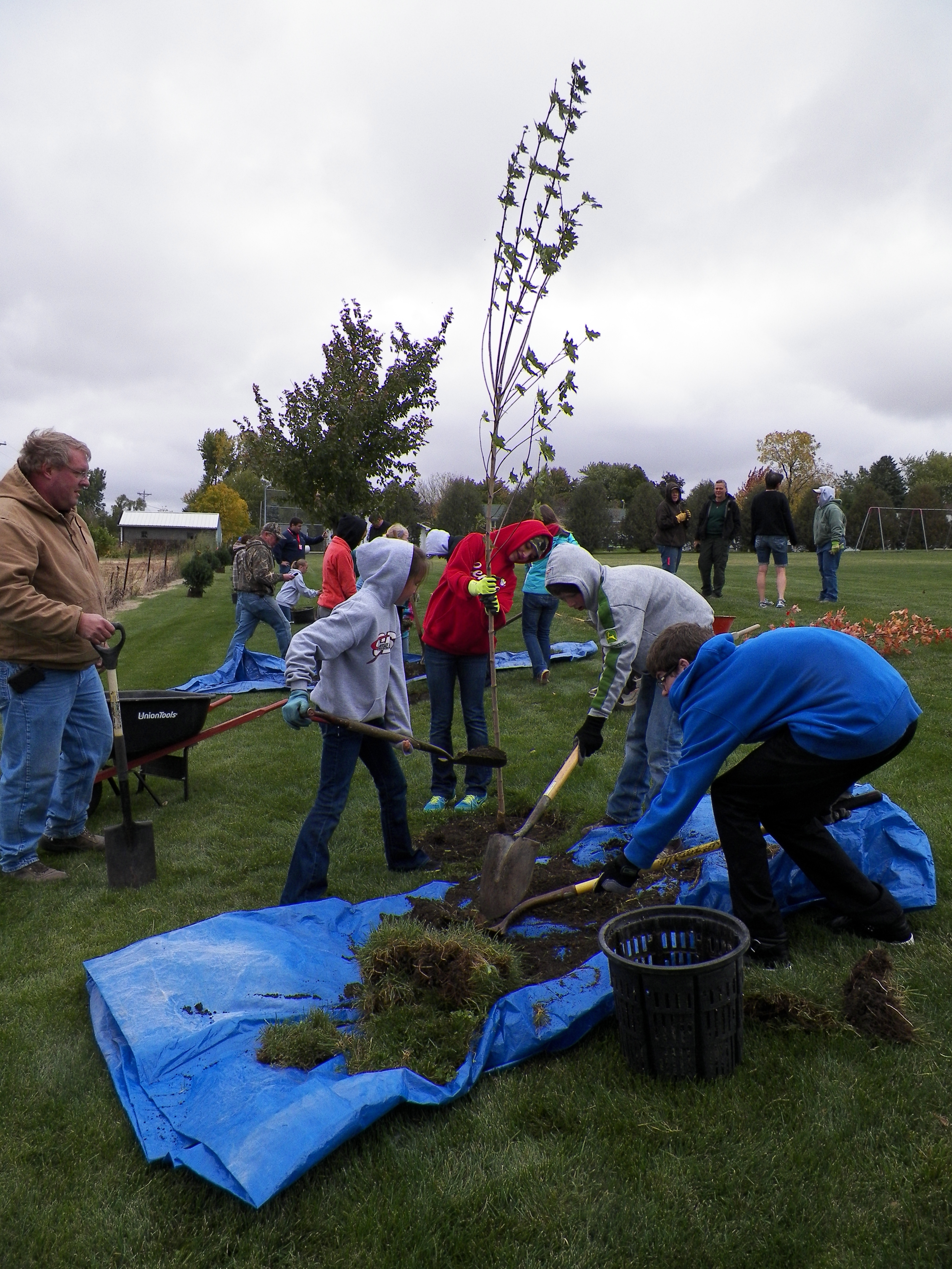 Several trees and bushes were planted on the western most boundary of the school property to serve as a windbreak.